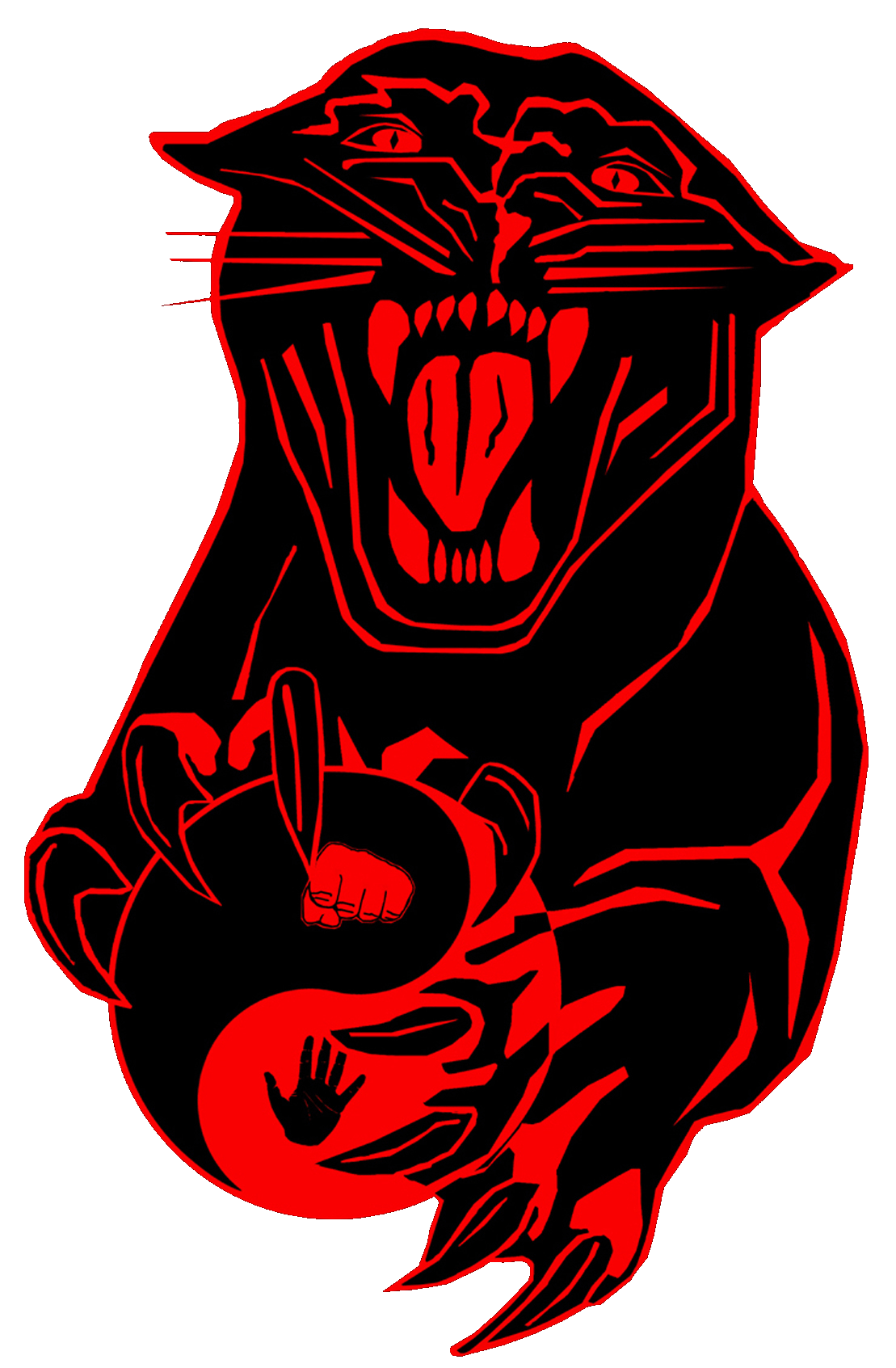 Ilustração digital de pantera vermelha segurando esfera yin-yang preta e vermelha