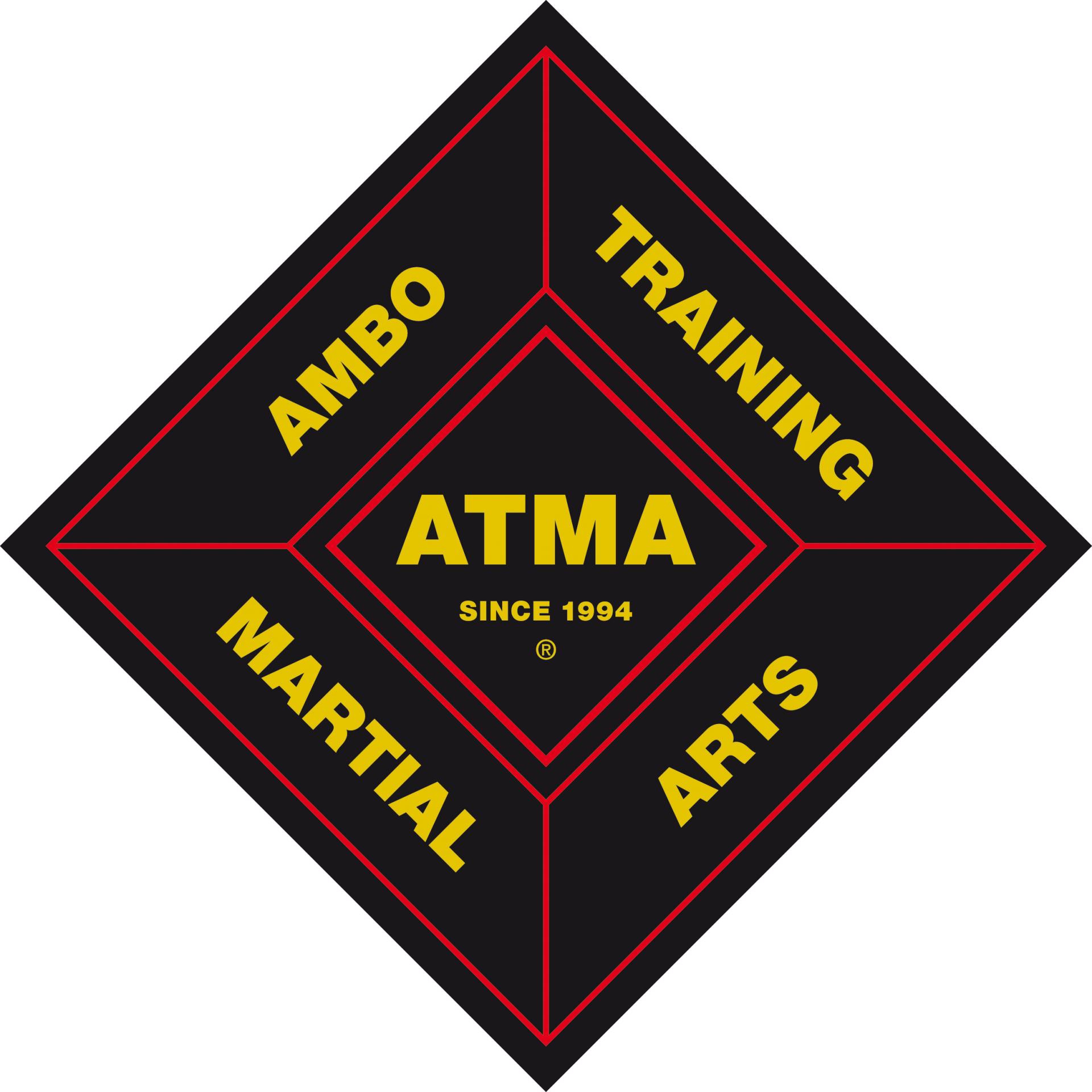Logótipo de artes marciais com texto amarelo em fundo preto e bordas vermelhas