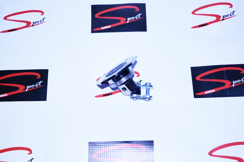Produto metálico prateado com parafusos sobre fundo branco com logótipos Sport